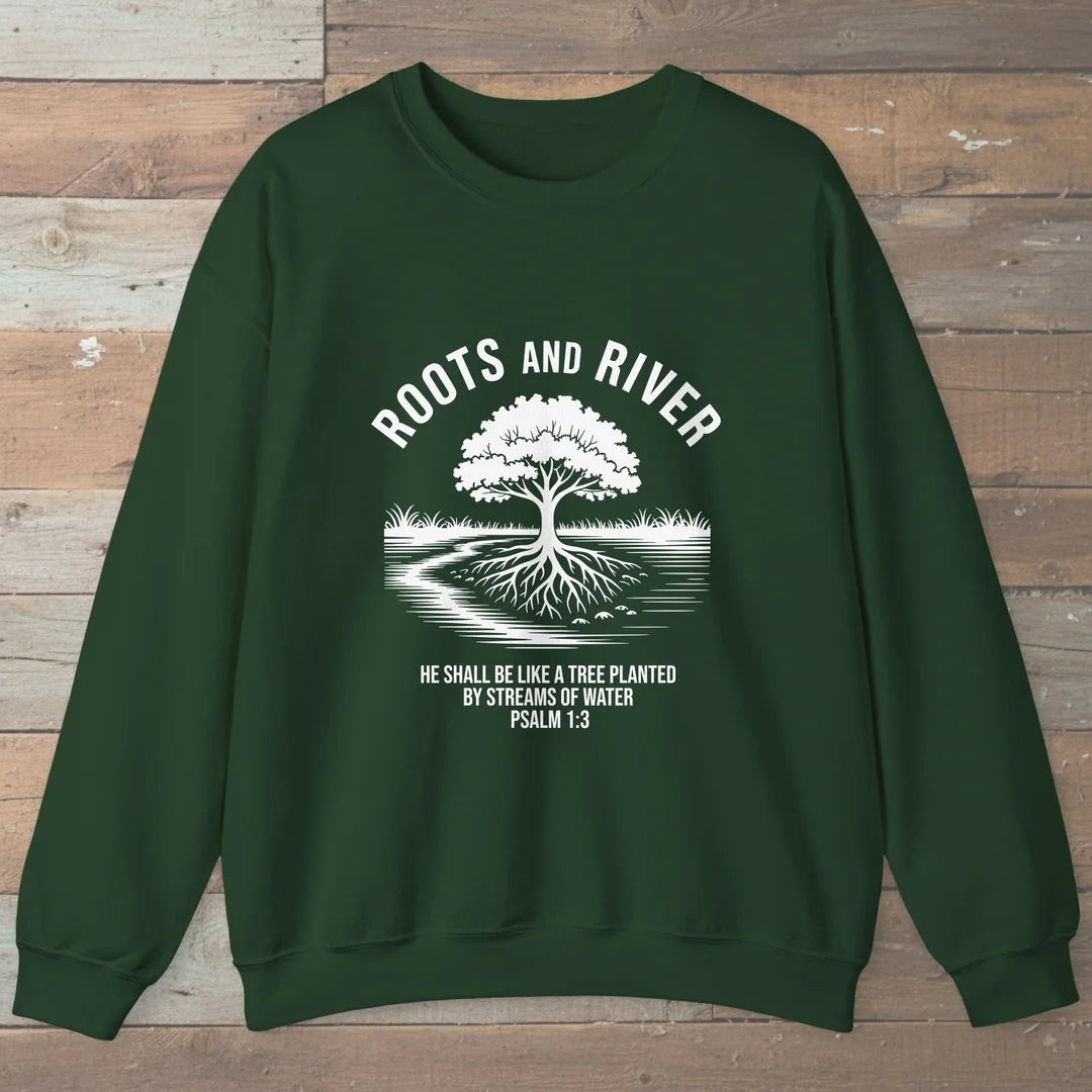 For cold trail mornings and slow river walks, this sweatshirt keeps the reminder close that real strength is rooted deep and fed by living water along every path.