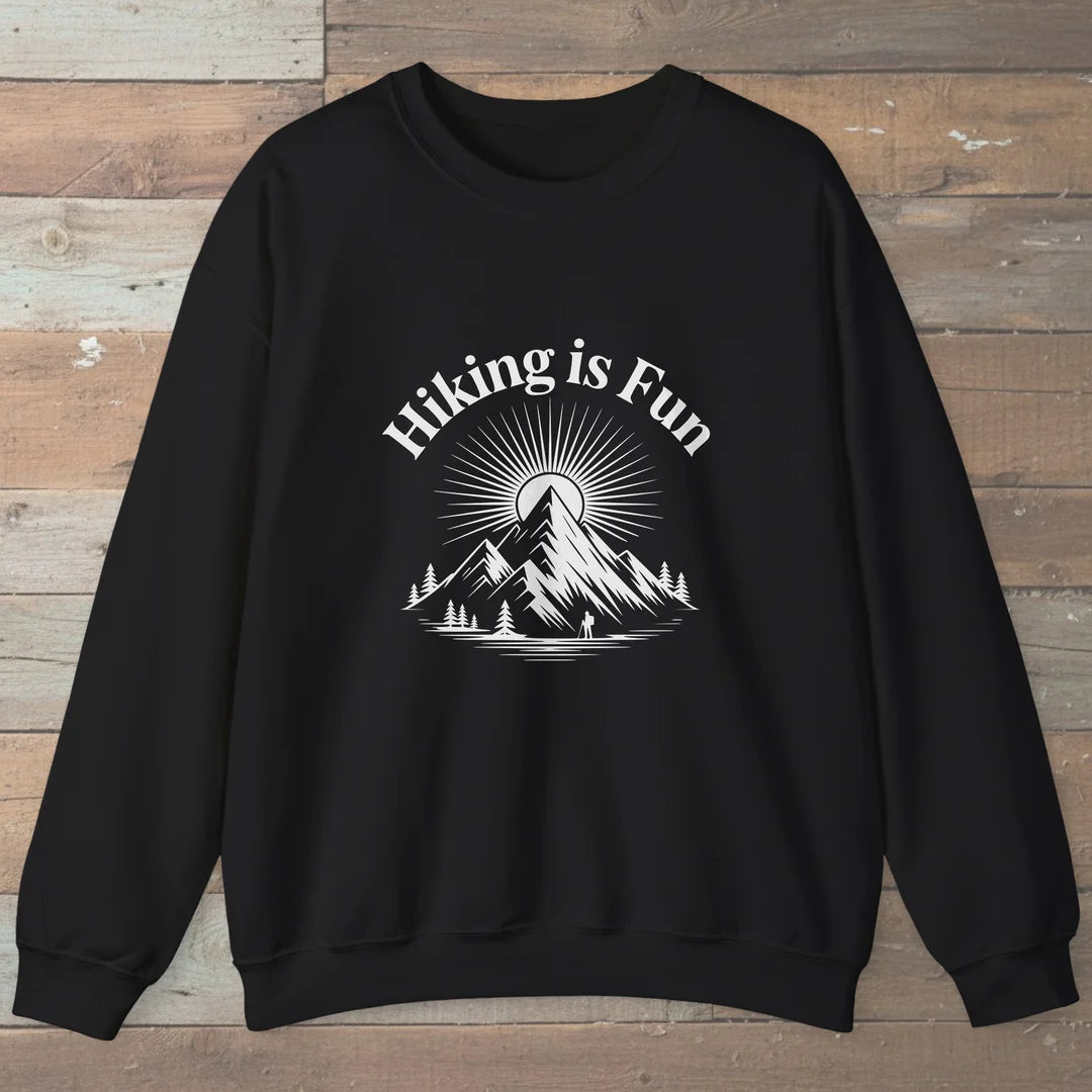 This sweater keeps the mood simple and true. Hiking is fun reminds us to enjoy the climb and the view.