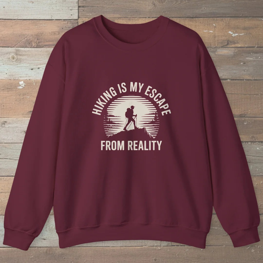This sweater speaks to the head-clearing miles outside. Hiking is my escape from reality captures the calm found beyond the noise.