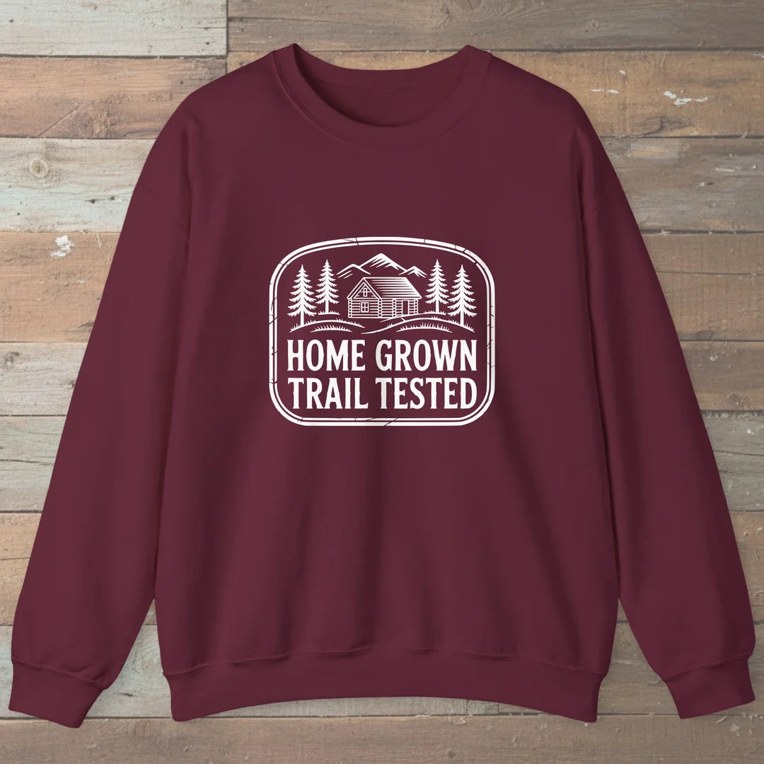 This sweater reflects roots and resilience. Home grown trail tested honors those who carry both heritage and grit through every outdoor story.