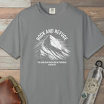 Built for hikers who know every climb tests more than legs, this tee carries the calm of solid ground and shelter. Wear it on the trail or in town as a quiet reminder of strength, protection, and steady footing when the path turns rough.