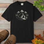 This tee captures the calm of nights under canvas and stars. For campers who measure time by firelight and the outline of distant peaks.