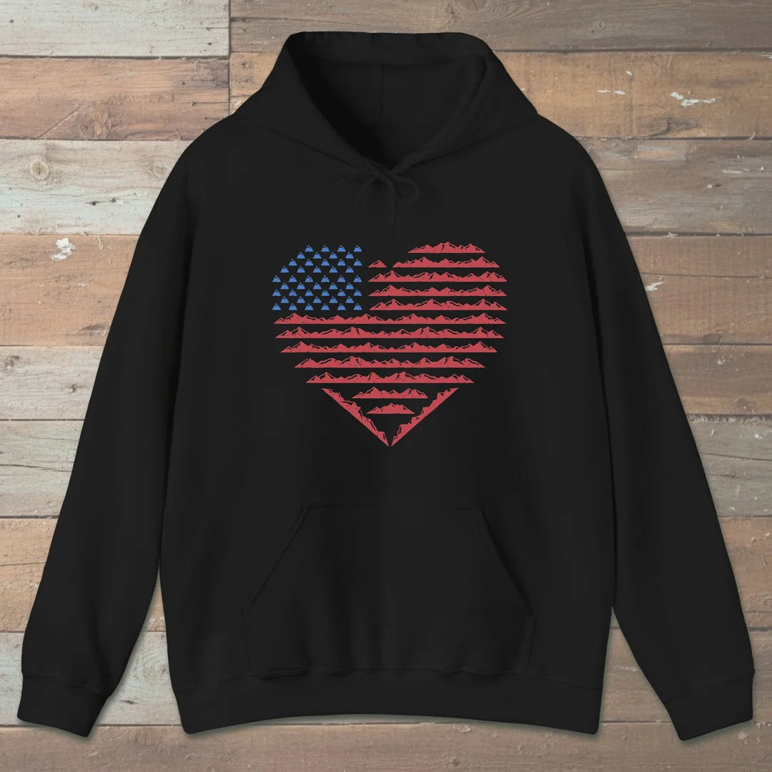 This hoodie is for the hiker whose heartbeat matches the climb. Pull it on when the air cools, the trail stretches ahead, and your love for wild American ground needs a steady, lived in layer.