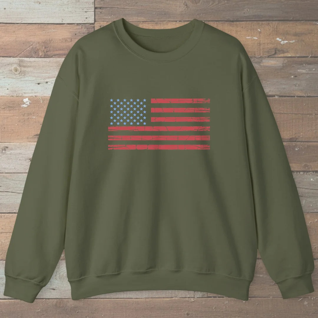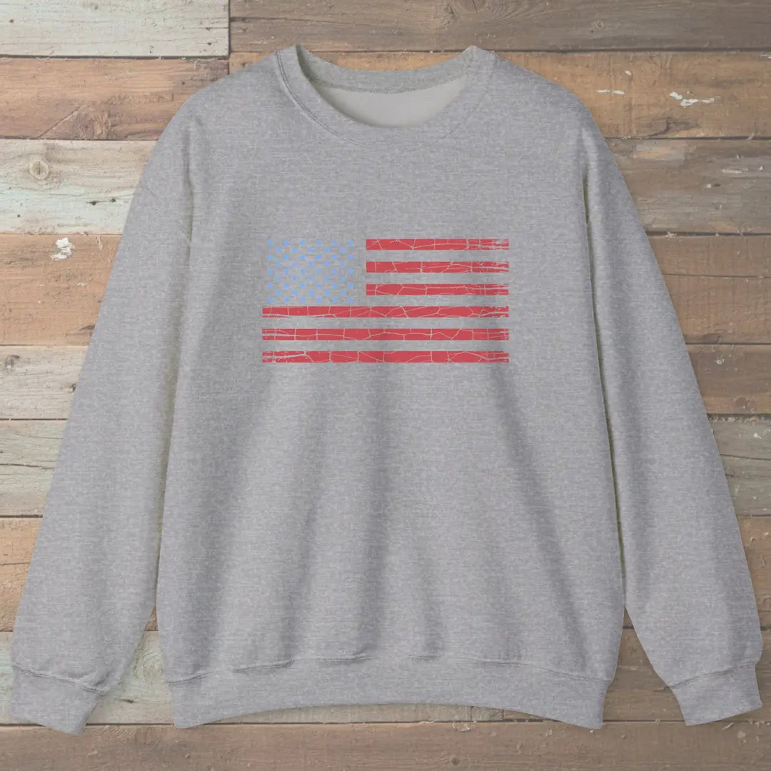 For cold trail mornings and long drives to the mountains, this sweatshirt carries a worn in American flag that feels like miles already walked and memories earned.