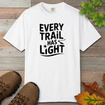A reminder to keep moving. Every trail has light speaks to hope found around the next bend and the patience to reach it.